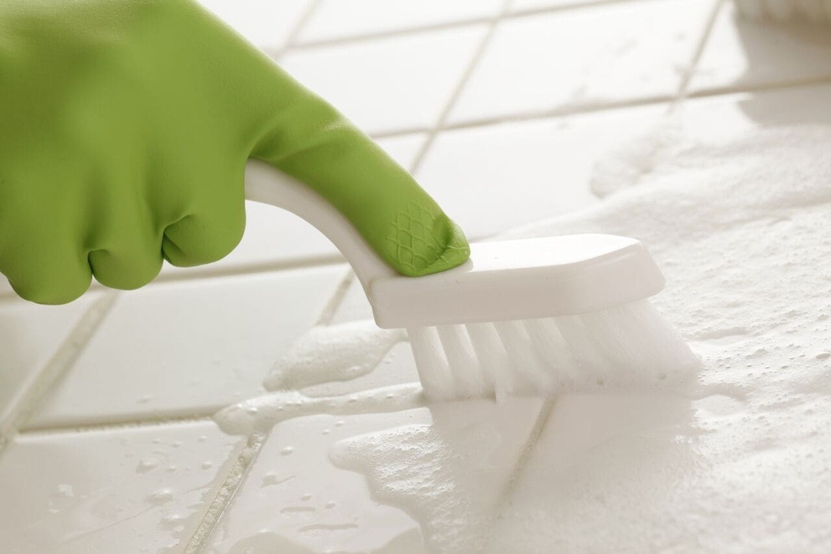 Uma escova com cerdas macias servirá para remover o calcário e a sujidade do banheiro.