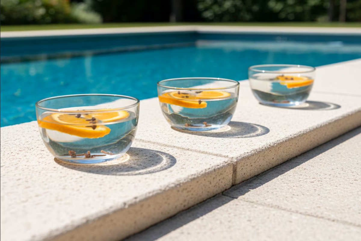 Com apenas alguns ingredientes, pode manter a água limpa e desfrutar sem mosquitos ou insetos irritantes. Costuma acontecer que, quando queremos entrar na piscina, ela está cheia de insetos flutuando na água, como mosquitos, formigas voadoras e até besouros. Além de serem incómodos, esses insetos sujam a piscina e obrigam a limpá-la com mais frequência. A boa notícia é que existe um truque caseiro que ajuda a mantê-los longe e a desfrutar de uma água mais limpa por mais tempo. Esta técnica consiste em colocar recipientes com água com rodelas de limão ou laranja e cravo-da-índia ao redor da piscina. Funciona porque os cítricos e o cravo-da-índia exalam um aroma que é desagradável para os insetos.