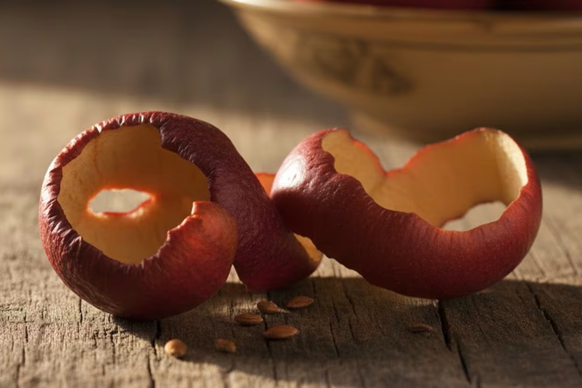 Embora geralmente acabe no lixo, a casca de maçã fornece nutrientes essenciais para o limoeiro. É rica em potássio, essencial para estimular a floração e o desenvolvimento correto dos limões, e também contém fósforo, que fortalece o sistema radicular. Além disso, adiciona fibras e matéria orgânica, o que melhora a estrutura do solo, aumenta a sua fertilidade e favorece um crescimento mais equilibrado da árvore. Este aporte natural ajuda o limoeiro a crescer mais saudável, com folhas mais verdes e novos rebentos mais vigorosos, sem necessidade de recorrer a fertilizantes químicos.