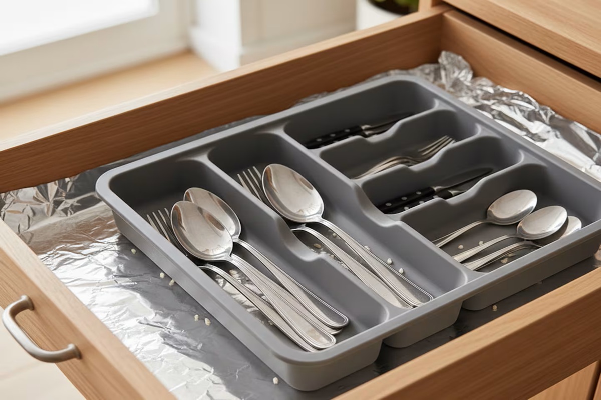 Para que serve colocar papel alumínio na gaveta dos talheres