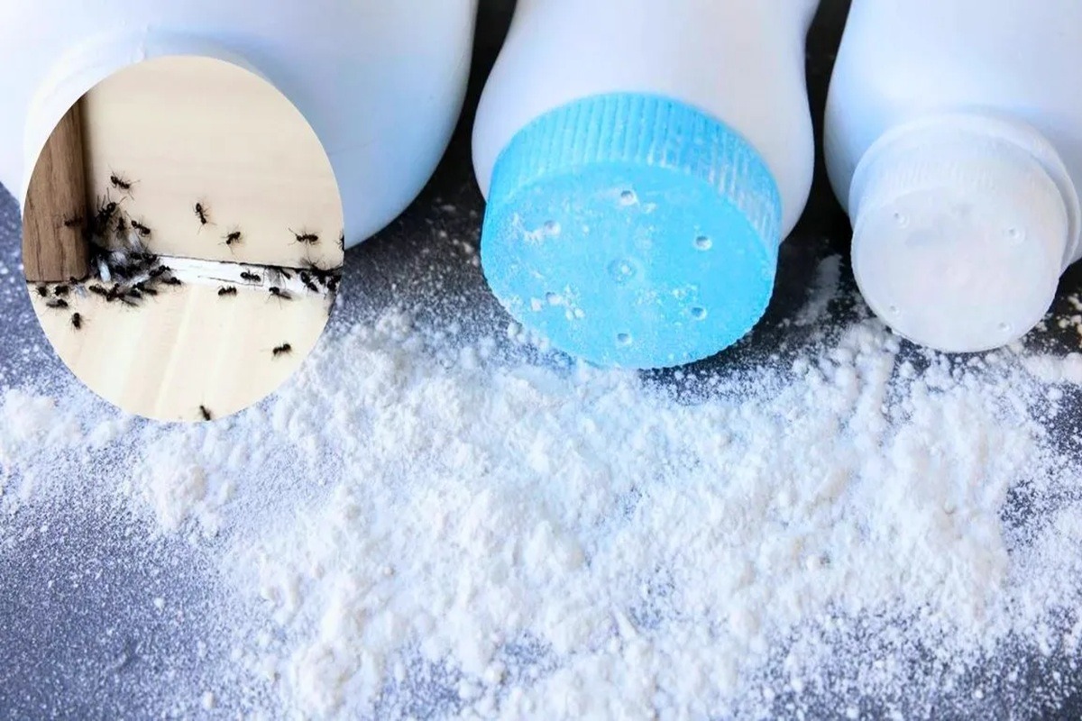 • Repelente natural: o cheiro e a textura do talco repelem as formigas, fazendo com que elas evitem áreas cobertas pelo pó.