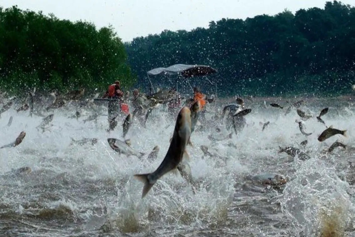 A carpa asiática foi introduzida nos Estados Unidos no século XX para combater as algas e melhorar a qualidade da água em lagoas agrícolas, mas fugiu para os rios ligados ao Mississippi. Desde então, ela se espalhou rapidamente pelo sistema fluvial e se tornou uma séria ameaça às espécies de peixes locais, pois compete com elas por alimento e espaço, o que pode levar à substituição de espécies tradicionais e à alteração da cadeia alimentar.