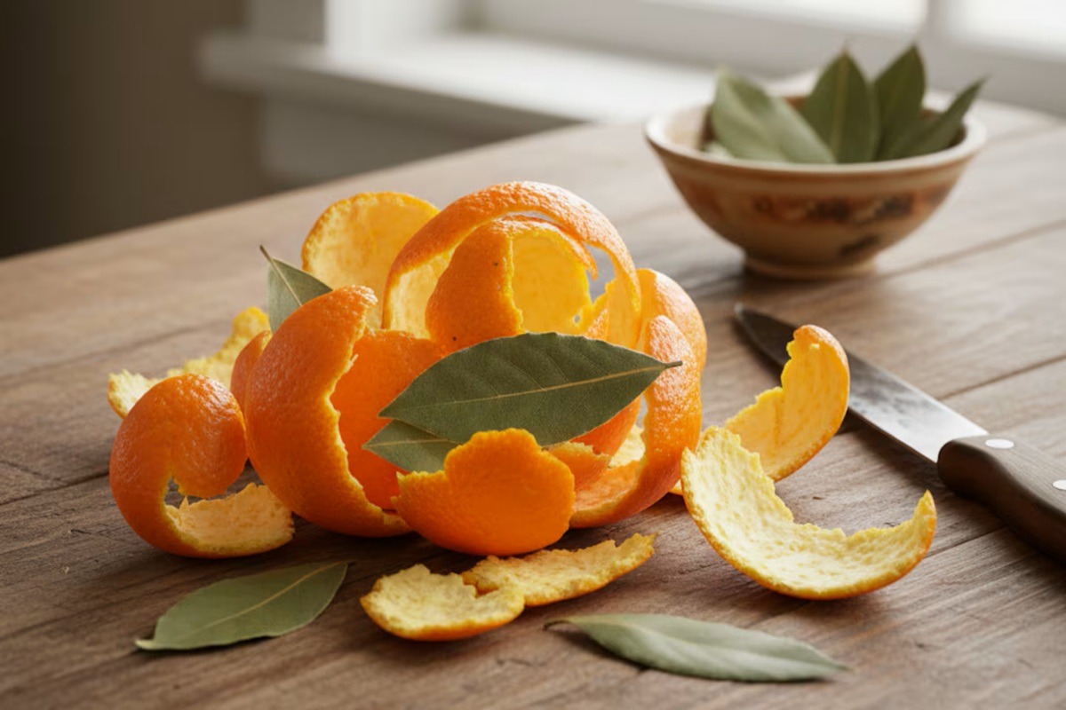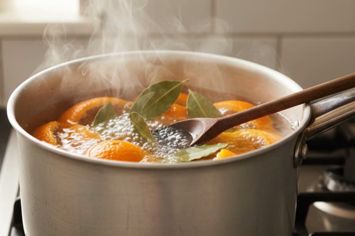Um método simples e natural para perfumar ambientes, eliminar maus odores e atrair boas energias. Ferver cascas de laranja e louro parece algo estranho, mas o que nem todos sabem é que tem vários benefícios para a casa. Esta técnica serve para perfumar de forma natural e deixar um aroma duradouro. Esta combinação libera óleos essenciais e compostos aromáticos que ajudam a neutralizar odores fortes, especialmente depois de cozinhar ou em dias de muita humidade. Ao ferver esses ingredientes, o vapor que se liberta aromatiza os ambientes e renova o ar de forma natural. É ideal para usar depois de preparar refeições com odores intensos, ao limpar a casa ou simplesmente para começar o dia com energia positiva. Em muitas casas, além disso, este ritual está associado à limpeza energética e à atração de boas vibrações, um costume herdado de crenças populares como o Feng Shui.