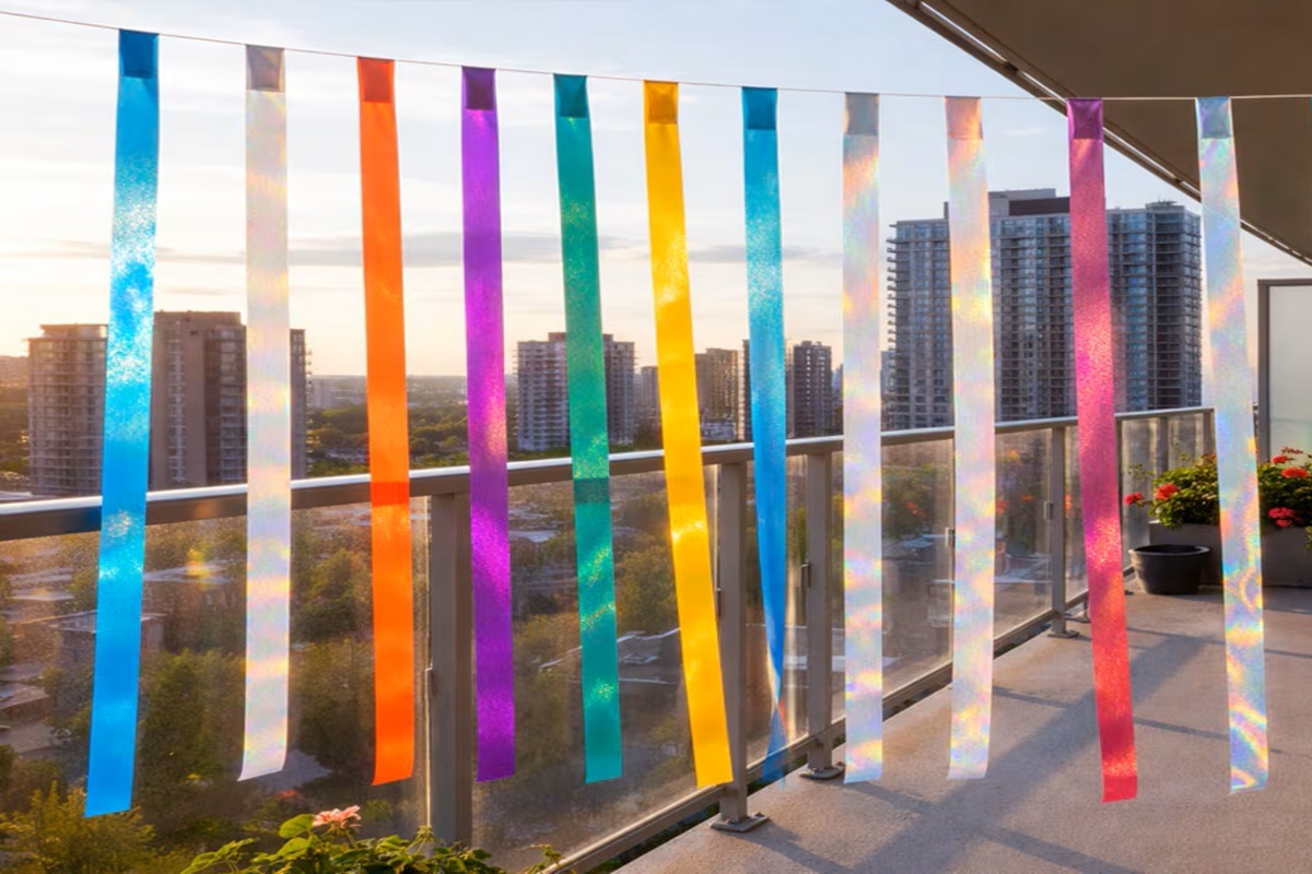 O principal objetivo das fitas holográficas na varanda é afugentar os pássaros, especialmente os pombos, através dos seus flashes coloridos e do reflexo do sol na fita. O movimento constante e os reflexos inesperados fazem com que os pássaros se mantenham afastados, pois percebem o local como um espaço inseguro Pendurar fitas holográficas protege o espaço da sujidade e dos danos que as aves podem causar tanto às suas plantas como à sua varanda.