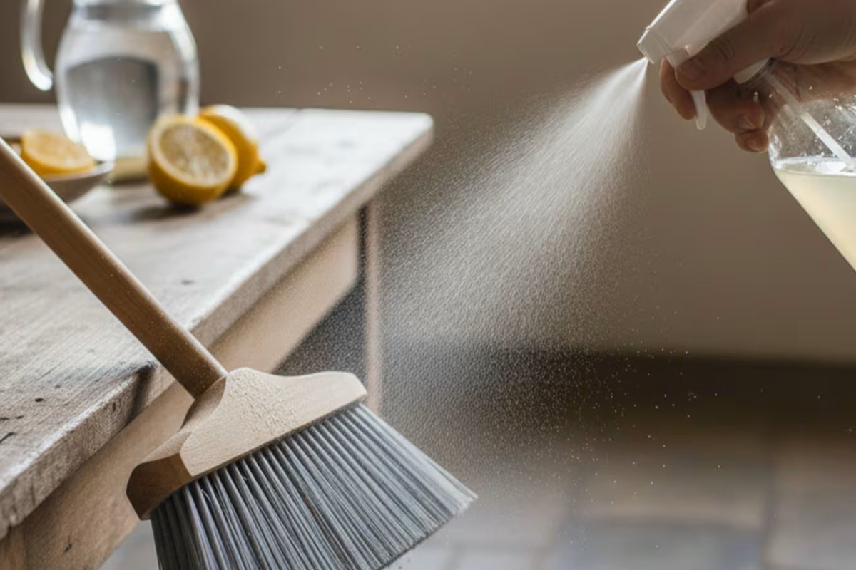 Conheça os benefícios deste pequeno gesto que pode mudar completamente o resultado da limpeza. Quando varremos, muitas vezes o chão não fica tão impecável quanto gostaríamos e o pó começa a espalhar-se por toda a divisão. Para evitar isso, existe um truque caseiro cada vez mais conhecido que pode mudar tudo: borrifar a vassoura com limão e água. Este método, tão simples e eficaz que se tornou viral nas redes sociais, mantém a vassoura limpa por mais tempo e deixa o chão arrumado.
