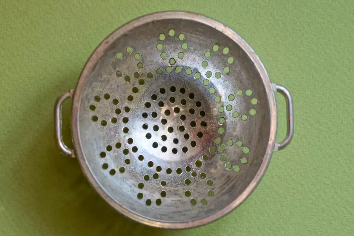 Primeiro, escolha um coador velho ou que não use e, se possível, que seja metálico. Se estiver partido, melhor: damos-lhe uma segunda vida. Depois, corte um círculo do tamanho da base do vaso que cubra o orifício, mas sem o bloquear. Coloque-o no fundo antes de colocar o substrato. Deve ficar plano e firme. Encha com terra e plante normalmente. A água vai escorrer sem arrastar o substrato. Se o coador couber inteiro no vaso, também pode usá-lo como cesto interno: melhora a drenagem e facilita futuros transplantes.