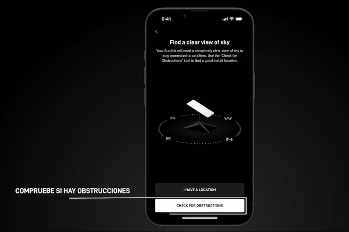 Para garantir o desempenho do Starlink, é fundamental instalar a antena num local com uma vista totalmente desobstruída do céu. A aplicação móvel inclui a ferramenta «Verificar se há obstruções», que permite identificar possíveis problemas na localização antes de iniciar a instalação. O processo é simples: coloque o seu telemóvel na altura e no local exato onde planeia instalar a antena. Em seguida, use a câmara do dispositivo para digitalizar o céu, seguindo as instruções da aplicação. Esta função mostrará imediatamente qualquer objeto que bloqueie o campo de visão do seu Starlink e indicará se o local selecionado é adequado.